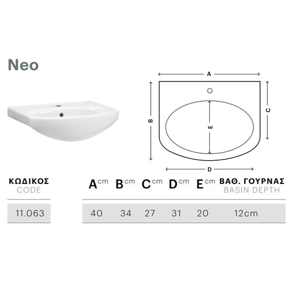 • Νιπτήρας Neo 11063 πορσελάνη λευκή