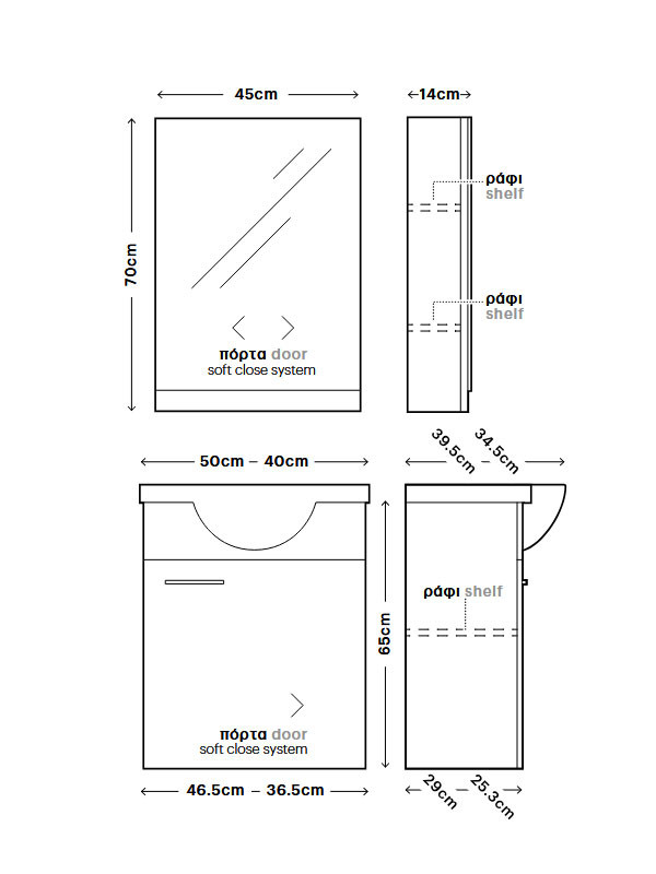 • Στην τιμή δεν συμπεριλαμβάνονται: το φωτιστικό και η μπαταρία του νιπτήρα