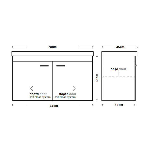 • Διάσταση (Μ x Π x Υ): 67 x 43 x 55 cm
