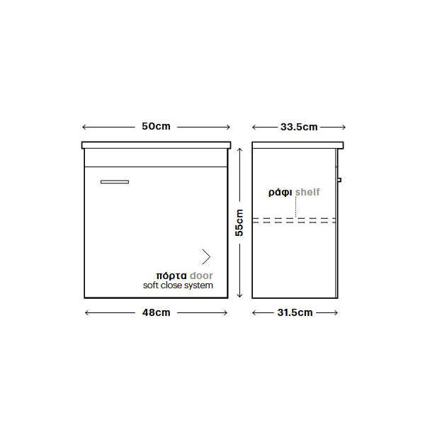 • Διάσταση (Μ x Π x Υ): 48 x 31,5 x 55 cm