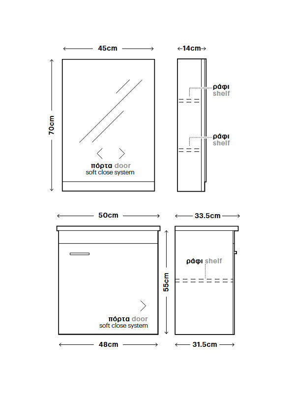 Savvopoulos Emily III 50 Έπιπλο Μπάνιου Μελαμινικό