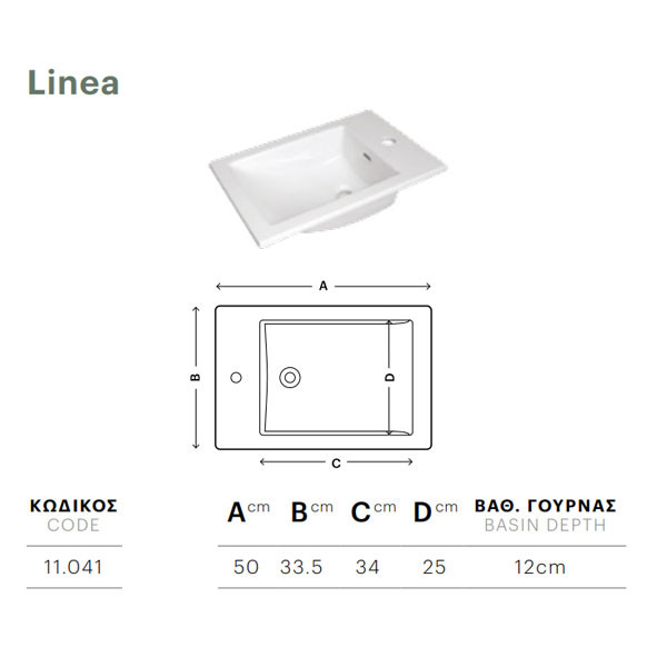 • Νιπτήρας linea 50 πορσελάνη λευκή