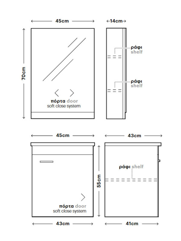 • Διάσταση (Μ x Π x Y): 45 x 14 x 70 cm