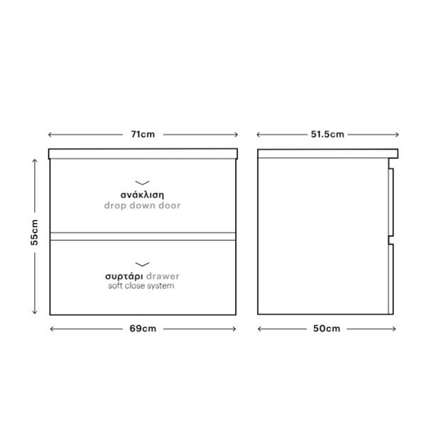 • Διάσταση (Μ x Π x Υ): 69 x 50 x 55 cm