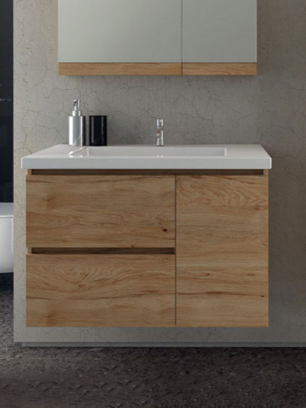 • Πάγκος κρεμαστός 290861 με τρεις αποθηκευτικούς χώρους, ένα ντουλάπι με ανακλινόμενη πόρτα, ένα συρτάρι και ένα ντουλάπι με ένα ράφι, με μηχανισμούς soft close (αργό κλείσιμο), από M.D.F 16 mm με επένδυση laminate, σε χρώμα 8777 Possitano