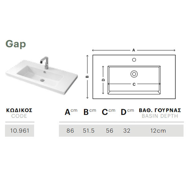 • Νιπτήρας GAP 10.961 πορσελάνη λευκή