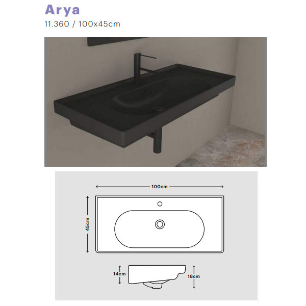 • Ο νιπτήρας διατίθεται και σε μαύρη πορσελάνη Arya Black 100 με επιλογή