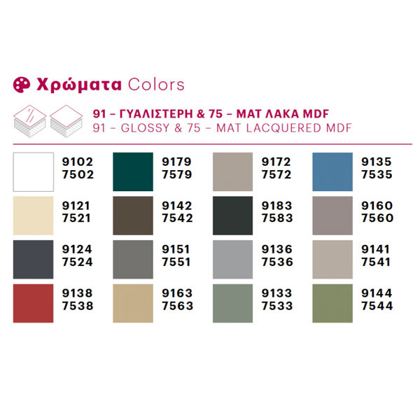• Διατίθεται σε 16 αποχρώσεις λάκας με γυαλιστερή ή ματ επιφάνεια με επιλογή