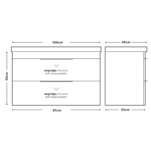 • Διάσταση (Μ x Π x Υ): 97 x 43 x 55 cm