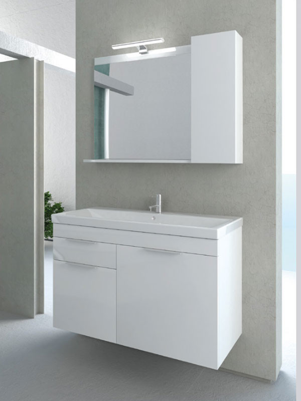 • Καθρέπτης Hermes 8180 κρεμαστός, με ένα ντουλάπι, με πορτάκι με μηχανισμό soft close (αργό κλείσιμο)και δύο ράφια, από M.D.F 16 mm