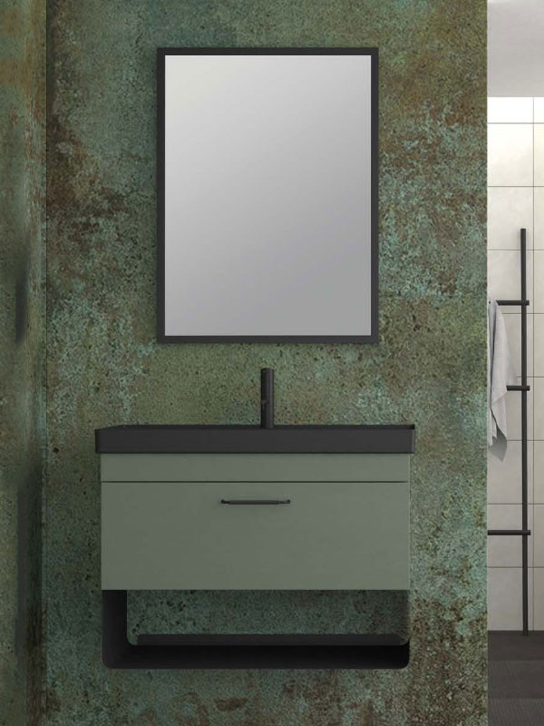 • Πάγκος κρεμαστός 2632 με ενιαίο αποθηκευτικό χώρο, με μία ανακλινόμενη πόρτα με soft close (αργό κλείσιμο) και ένα ράφι, από M.D.F 16 mm σε χρώμα λάκας 9133 Olive Glossy