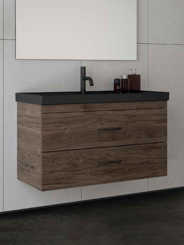 • Πάγκος κρεμαστός 7132 με ενιαίο αποθηκευτικό χώρο, με δύο συρτάρια με soft close (αργό κλείσιμο), από M.D.F 16 mm με επένδυση laminate, σε χρώμα 8087 Dark Hickory