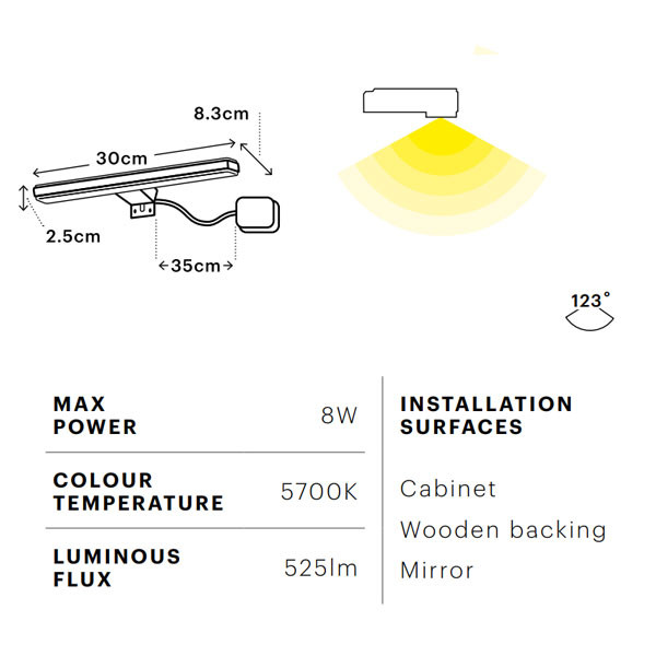 • Διάσταση: 30 x 8,3 x 2,5 cm