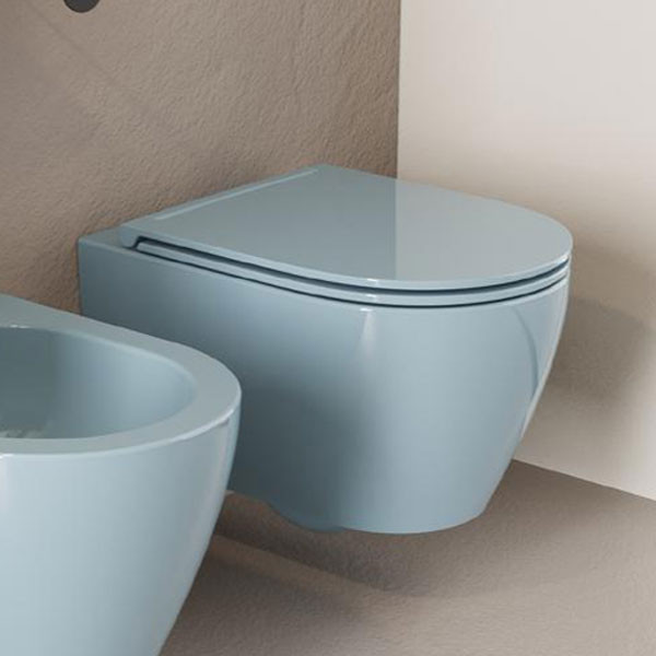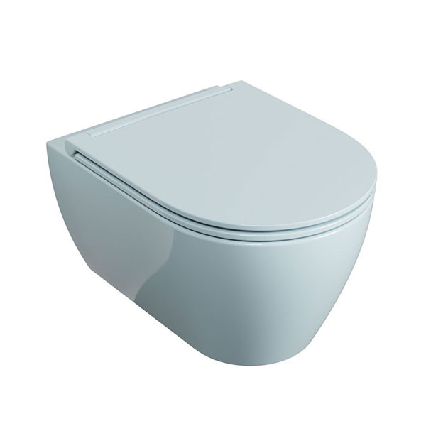 • Λεκάνη κρεμαστή κομπλέ rimless, με σύστημα πλύσης Twist και κάλυμμα βακελίτη αποσπώμενο, σε χρώμα glossy air