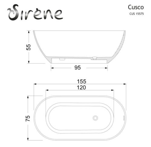 • Για την μπανιέρα Sirene Cusco 155 λευκό ματ προτείνεται επιδαπέδια μπαταρία λουτρού
