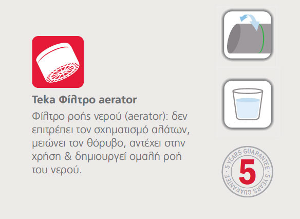 • Φίλτρο ροής νερού (aerator) με προστασία από τα άλατα