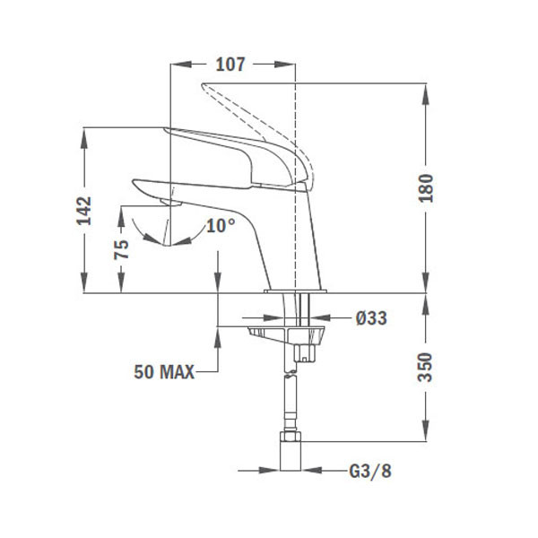 • Φίλτρο ροής νερού (aerator) με προστασία από τα άλατα με ρυθμιστή ροής νερού 5 lt/min