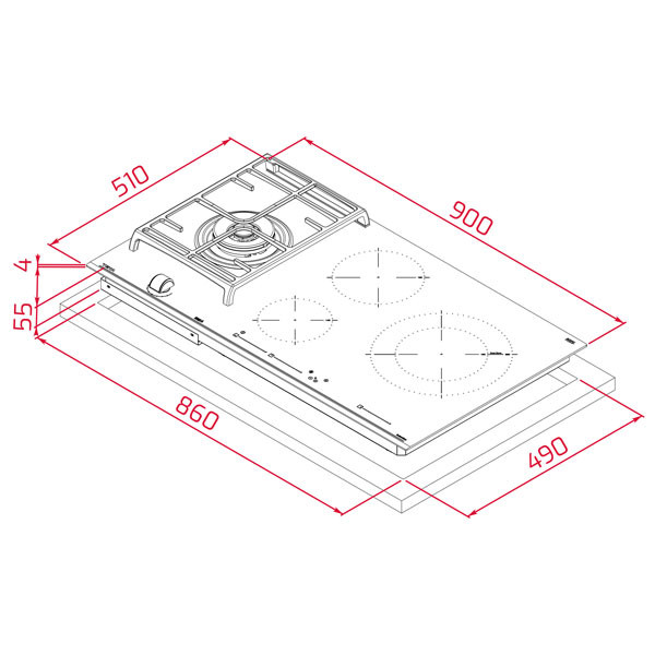 Teka JZC 94313 Ανεξάρτητη Κεραμική Εστία με συνδυασμό εστιών γκαζιού & επαγωγής, 90 cm
