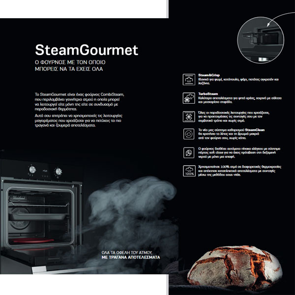 Εντοιχιζόμενος φούρνος πολλαπλών λειτουργιών με SurroundTemp για ομοιόμορφη κατανομή της θερμότητας & ψήσιμο σε διαφορετικά επίπεδα