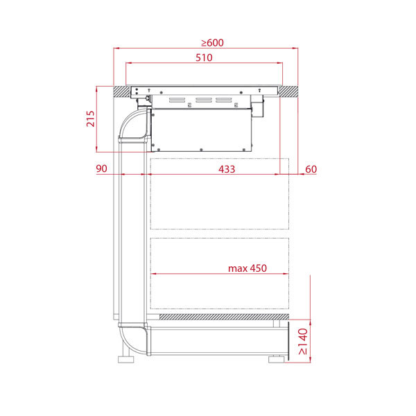 • Απορροφητική ικανότητα μέγιστη ταχύτητα 601 m3/h, εντατική ωταχύτητα 627 m3/h
