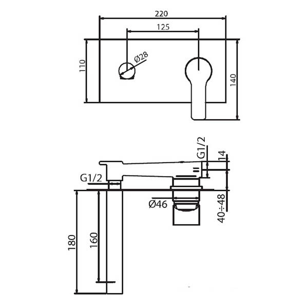 • Μπαταρία εντοιχισμού νιπτήρος χρωμέ