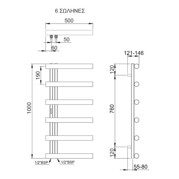 Θερμαινόμενη πετσετοκρεμάστρα από ανοξείδωτο χάλυβα AISI 304, για υδραυλική ή ηλεκτρική λειτουργία