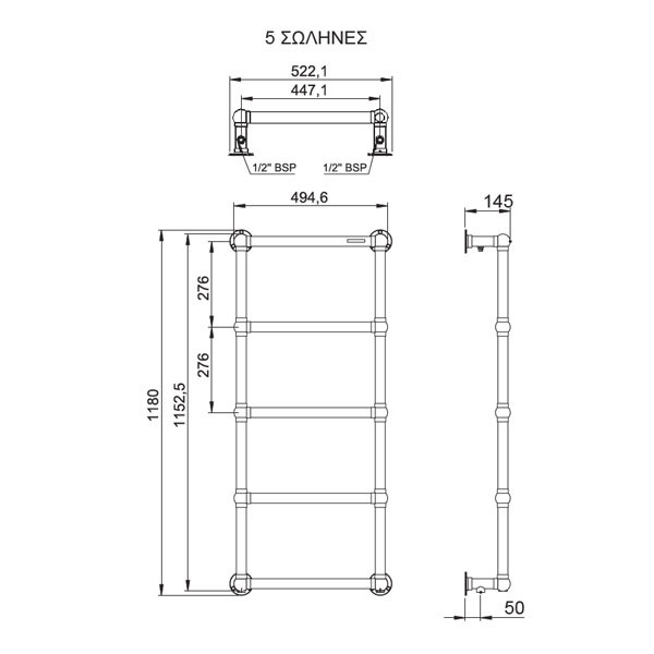 Thermo Adelphi ADE8849-110 Θερμαντική Πετσετοκρεμάστρα Inox Finish 49,4 X 87,6