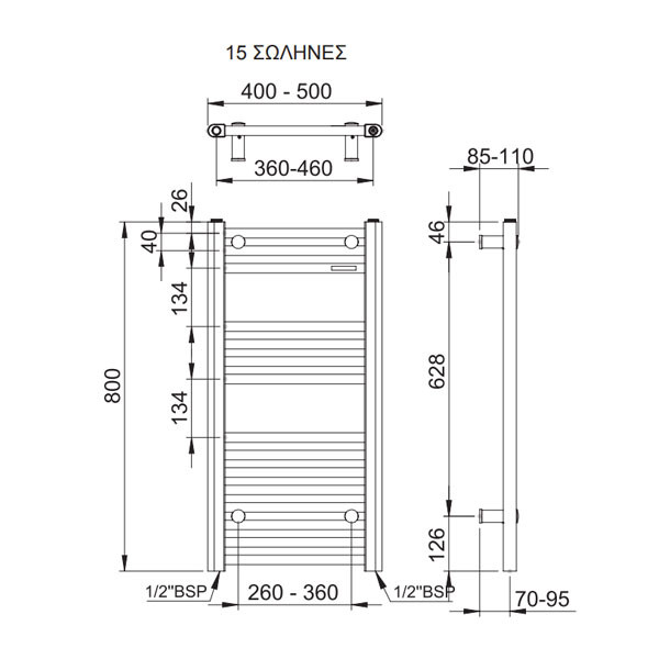 Θερμαινόμενη πετσετοκρεμάστρα από χάλυβα, για υδραυλική ή ηλεκτρική λειτουργία