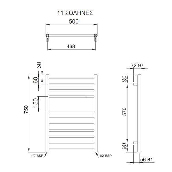 Thermo Bellavia BEL7550-111 Θερμαντική Πετσετοκρεμάστρα Inox Brushed 50 X 75