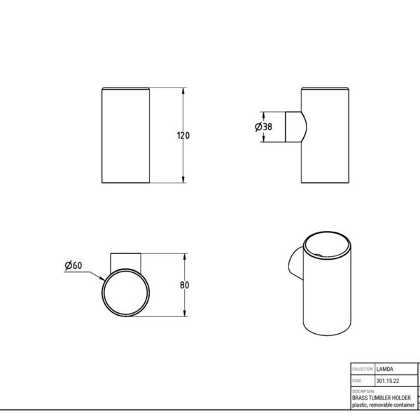 Verdi PVD Lamda Warm Gold Brushed 301.15.43 Ποτηροθήκη
