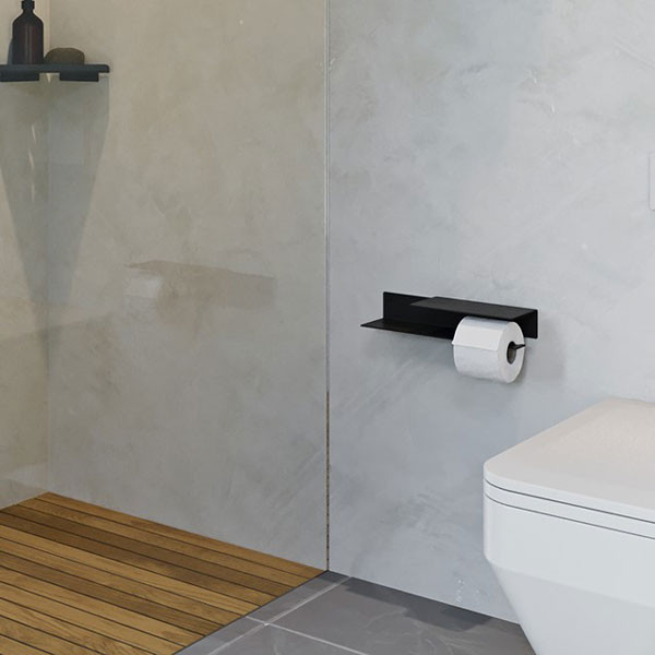 • Χαρτοθήκη μπάνιου με ράφι σε μαύρο ματ