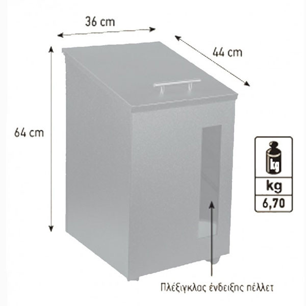 • Μεταλλικό κουτί φύλαξης πέλλετ με ένδειξη
