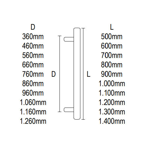 • Στην επιλογή διάστασης ο πρώτος αριθμός αφορά την απόσταση από τρύπα σε τρύπα και ο δεύτερος αριθμός αφορά την συνολική διάσταση της λαβής