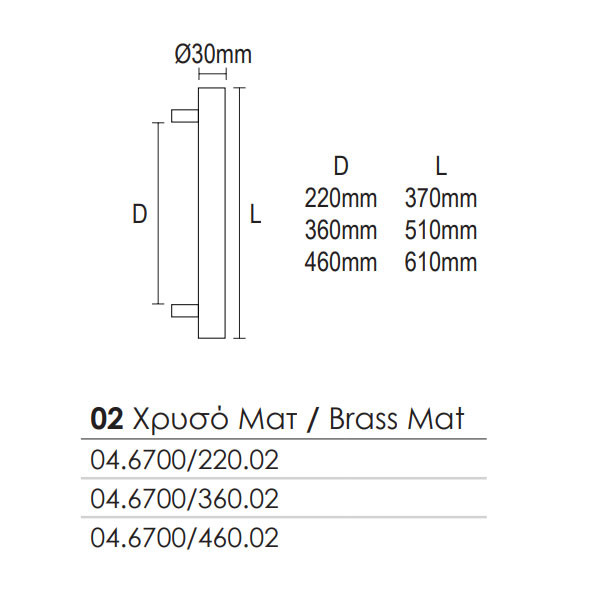 • Στην επιλογή διάστασης ο πρώτος αριθμός αφορά την απόσταση από τρύπα σε τρύπα και ο δεύτερος αριθμός αφορά την συνολική διάσταση της λαβής