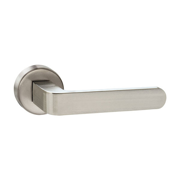 • Πόμολο φιξ εξώθυρας χρώματος νίκελ ματ σε ροζέτα για κλειδαριά ασφαλείας