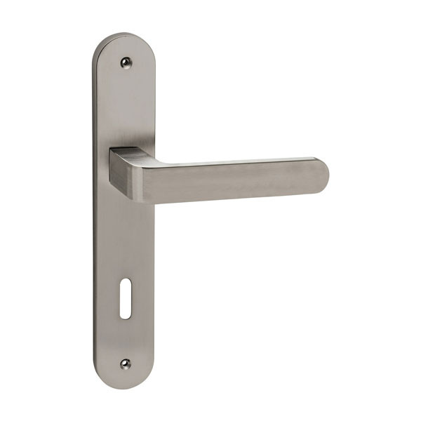 • Πόμολο φιξ εξώθυρας χρώματος νίκελ ματ σε πλάκα για κλειδαριά ασφαλείας