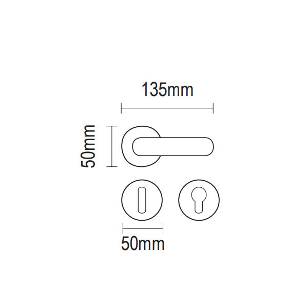 • Πόμολο μεσόπορτας ροζέτα σε χρώμα νίκελ ματ