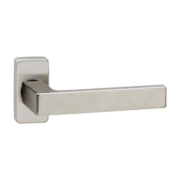 • Πόμολο φιξ εξώθυρας χρώματος νίκελ ματ σε ροζέτα για κλειδαριά ασφαλείας