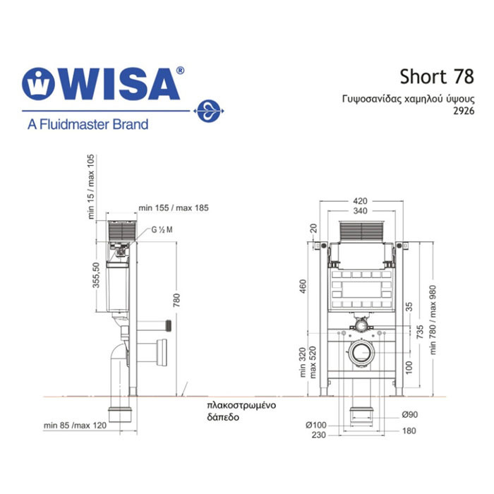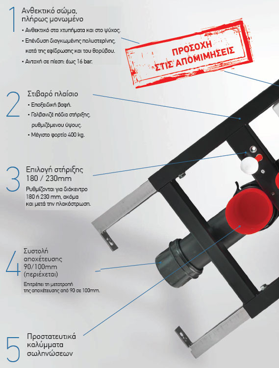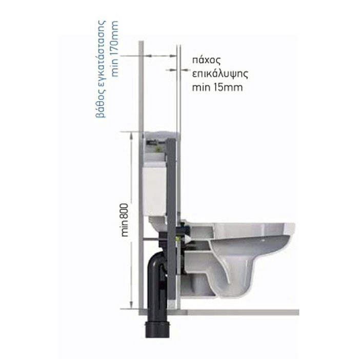 • Επίτοιχο καζανάκι εντοιχισμού ύψους 78 cm, για κρεμαστή λεκάνη